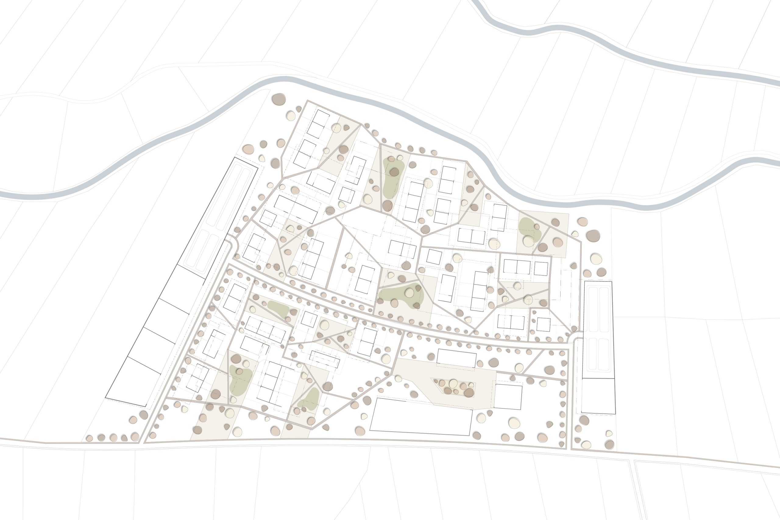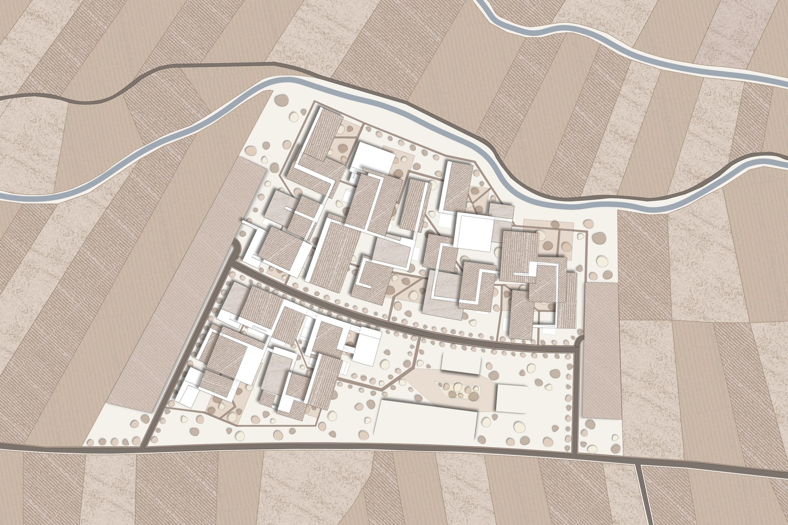 התכנון מדמה טופוגרפיה טבעית, כאשר השכונה בנויה כך שאזורי המשחק ממוקמים בקומת הקרקע בין בנייני המגורים, חללים ציבוריים פתוחים פזורים לכל אורך השכונה, והתנועה הפנימית איטית ללא נוכחות רכבים פרטיים. התוצאה היא מרחב מזמין למשפחות, לילדים ולקהילה, המשמר את התחושה הכפרית של המושבה גם בתוך מרקם חדש וצפוף יחסית למושבה הקיימת.