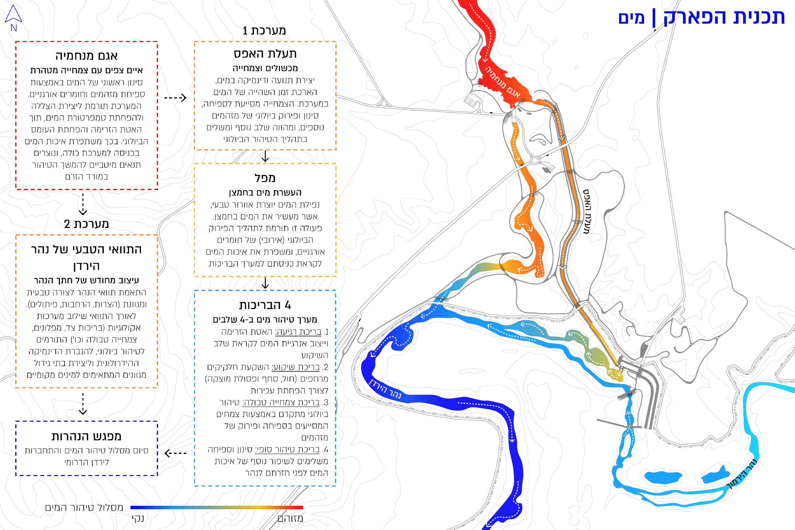הפרויקט מבקש להשיב לנהר הירדן את מעמדו ההיסטורי כסמל לחיים, תנועה ושיתוף פעולה אזורי, ורואה בשיקום הנהר חלון לשיקום היחסים עם ירדן והנחת תשתית לשיתוף פעולה עתידי בין המדינות. התכנית מתמקדת במקטע הירדן הדרומי ותתבצע בשני שלבים: בשלב הראשון, השבת זרימת המים, טיהור מקורות הזיהום ושיקום המערכות האקולוגיות והנופיות. בשלב השני, יפותחו מוקדים מבוססי טבע, מורשת ותיירות, שעתידים להפוך למוקדי חיבור אזוריים. פעולות אלו אינן רק סביבתיות באופיין, אלא גם מהלך דיפלומטי שקט שיניע תהליכים רחבי היקף, יחזק את הקשרים האזוריים, ויעצב מחדש את מערכת היחסים בין הנהר למרחב הסובב אותו.