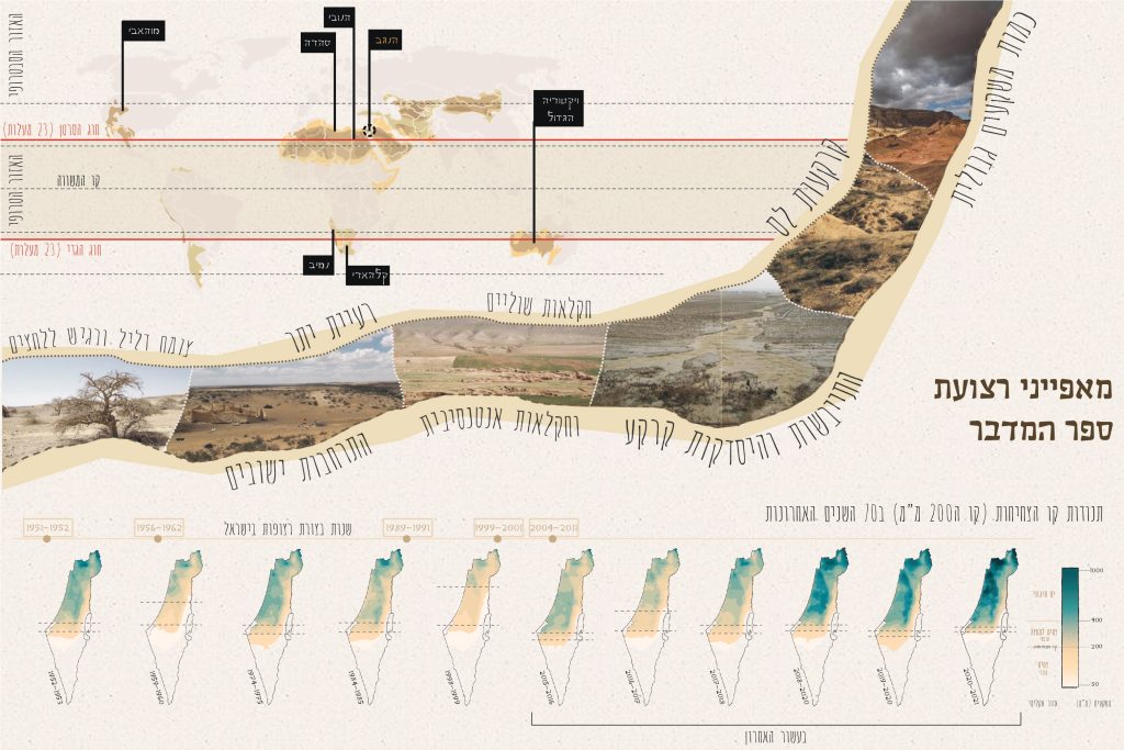 אזור סף המדבר שבצפון ומערב הנגב, המגלם את המעבר בין אזורים צחיחים למחצה ואזורים מדבריים, הוא הרגיש והחשוף ביותר לתהליכים אלה, ובו נמדדים לאורך שנים איבוד וסחיפה משמעותית של קרקעות וכיסוי צומח עד לרמות המאפיינות את המדבר. המשמעות היא שב25 השנים הבאות של מדינת ישראל, אנו צפויים לאבד כ47% מאדמותיה הפוריות לגידולים חקלאיים, לכך השלכות ישירות על בטחון המזון של אוכלוסיית המדינה, ונופי התרבות החקלאיים בצפון ומערב הנגב יימצאו בסכנת היעלמות.