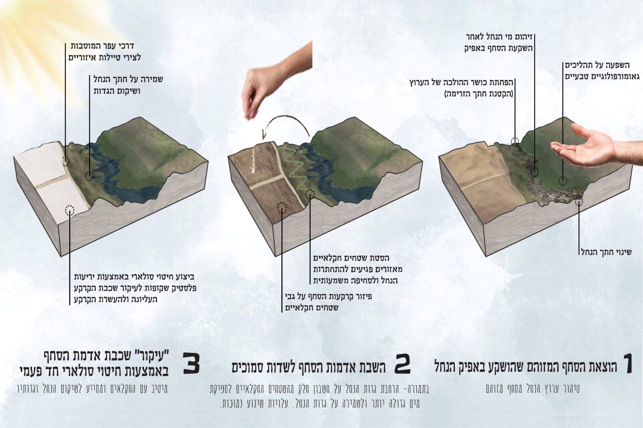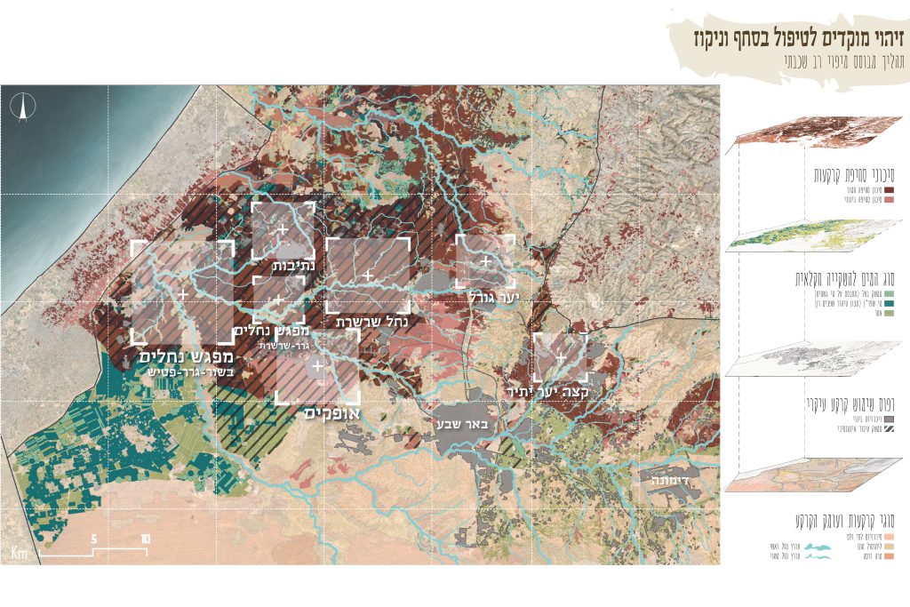 מאז עלייתן על הקרקע, ההתיישבויות הכפריות באזור סף המדבר מקיימות אורח-חיים חקלאי תלוי משאבים טבעיים מוגבלים, וממלאות את חזון הפרחת השממה. מתוך חשיבותו הלאומית האקוטית של הנגב הצפוני והמערבי והצורך לשמרם כ"אסם התבואה" של ישראל, הפרויקט מציע לחשוב מחדש על דפוסי תכנון ושימוש בקרקע באזור סף המדבר, ומתמקד בשני מוקדים ממגזרים שונים: העירוני- אופקים, והכפרי- מפגש נחלי בשור-גרר. הפרויקט מציע מערכות תכנוניות המתמקדות בבריאות הקרקע כאבן יסוד קיומי ולשיקום נופי, חקלאי ואקולוגי באזורים רגישים להתדרדרות קרקע ולמדבור. מאמצי שיקום ושימור אלה נובעים מהתפיסה לפיה הקרקע היא משאב-מפתח מתכלה שיש לשמור עליו, ושיש ביכולתנו לאפשר שינויים בדפוסי השימוש בקרקע כדי לאבד פחות ממנו. הפרויקט מבקש להחזיר את הקרקע למרכז – לא כמשאב מנוצל ובלתי נדלה, אלא כישות חיה שיש לנהל בזהירות, לרפא ולהפעיל באופן מותאם.