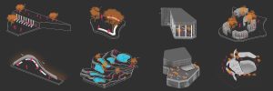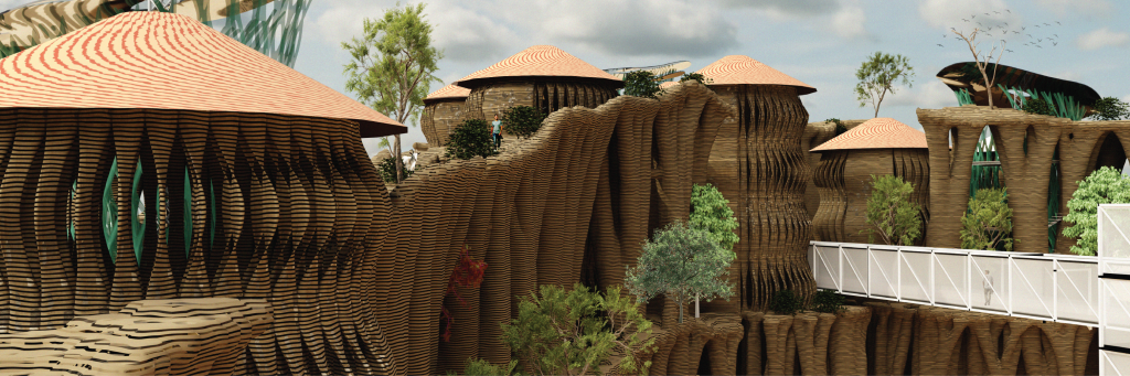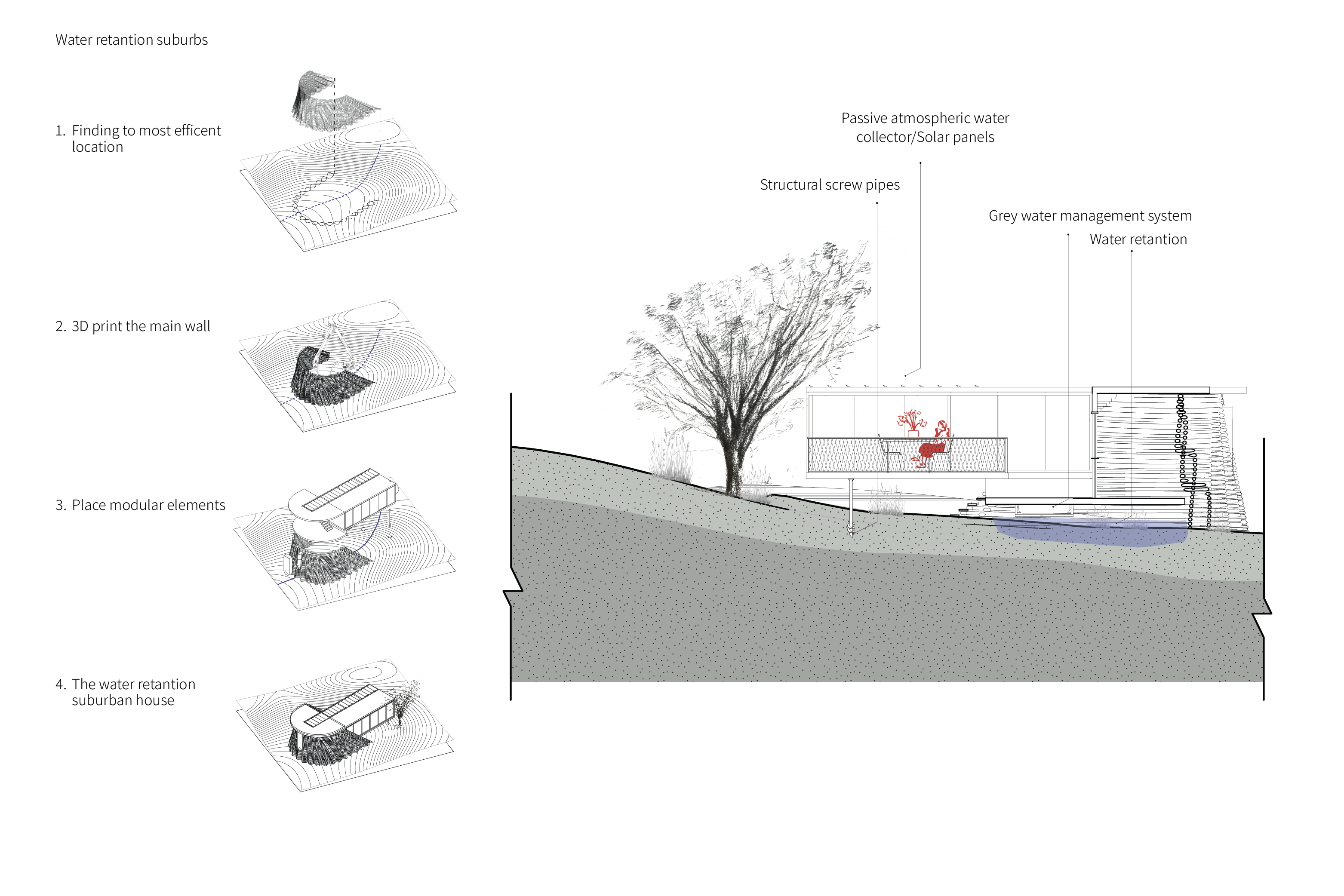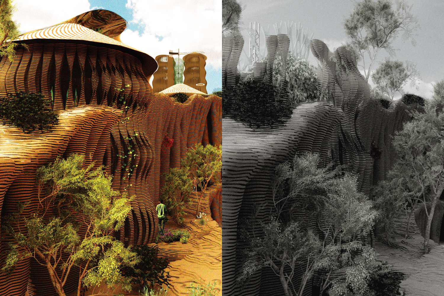 שתיהן מבוססות על ארגז כלים משקם, הכולל אלמנטים מודולריים והדפסות מאדמה מקומית, במטרה לייצר בינוי בעל טביעת רגל סביבתית נמוכה ככל האפשר. כך הופכת האדריכלות מגורם פוגע לכוח משקם, המסוגל לבלום את לולאת המדבור ולהציע מודל חדש של עיר פורייה במרחבי הספר המדבריים.