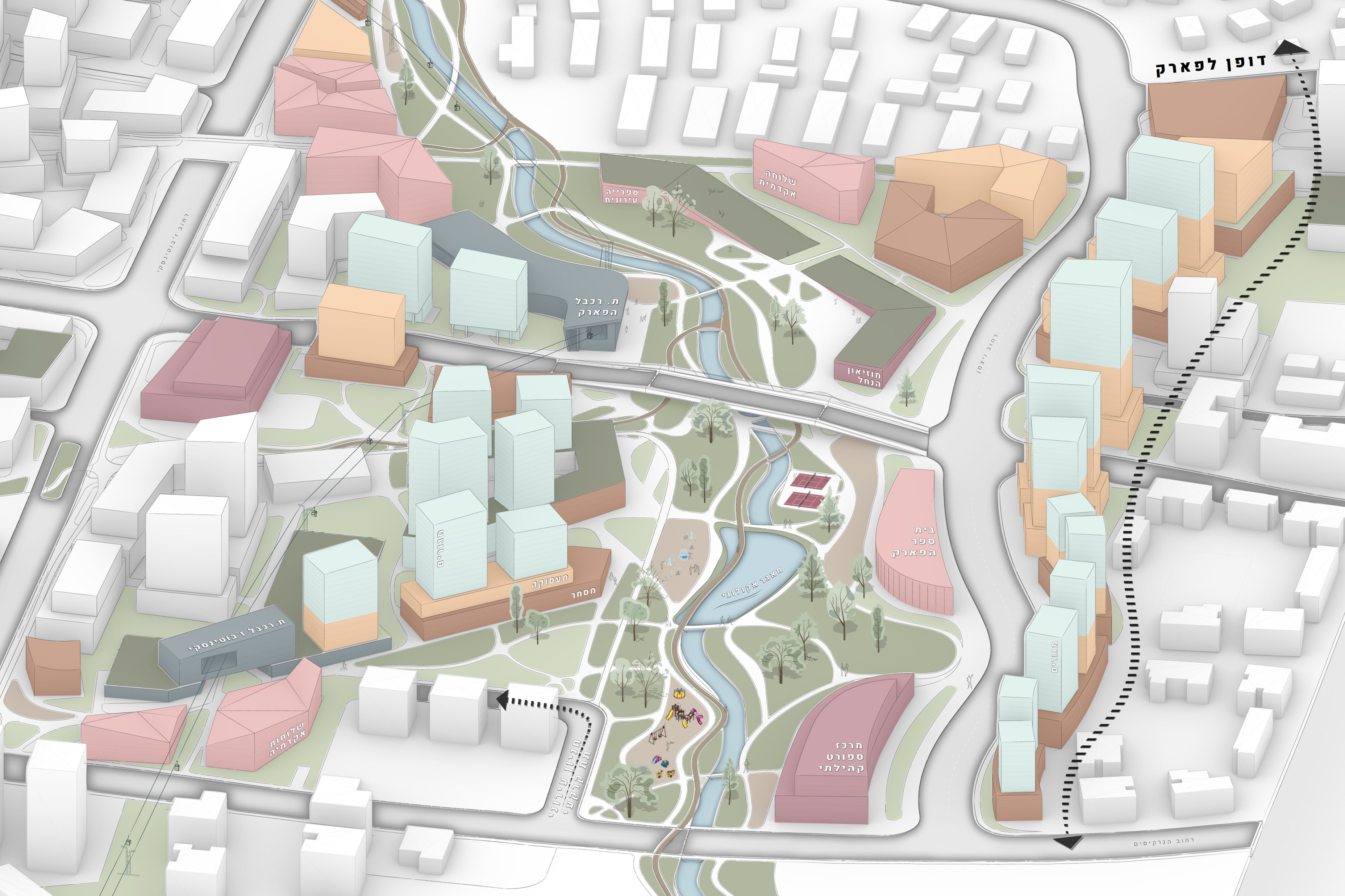 הפרויקט מבקש להתמודד עם תופעת הנתקים המרחביים – שברים הנוצרים בלב המרחב העירוני בשל תכנון מודרניסטי גנרי, תשתיות הנדסיות חסרות מעוף ונוף טבעי שאינו משולב. נתקים אלו נוצרים ממגוון גורמים: תשתיות תחבורה המהוות חסמים פיזיים, מאפיינים טופוגרפיים המייצרים הפרדות טבעיות ותכנון עירוני שאינו מתחשב בסביבה הטבעית הקיימת ולעיתים נותן משקל גבוה יותר לשיקולים כלכליים. הנתקים אינם רק פיזיים, השפעתם ניכרת ברקמת החיים העירונית. תאים מבודדים מחלישים את יכולת העיר להתקיים כמכלול חי, זורם ונושם המתממשק עם הסביבה הטבעית. עיר המחוברת היטב, מייצרת יעילות תפקודית וחוסן חברתי וסביבתי.