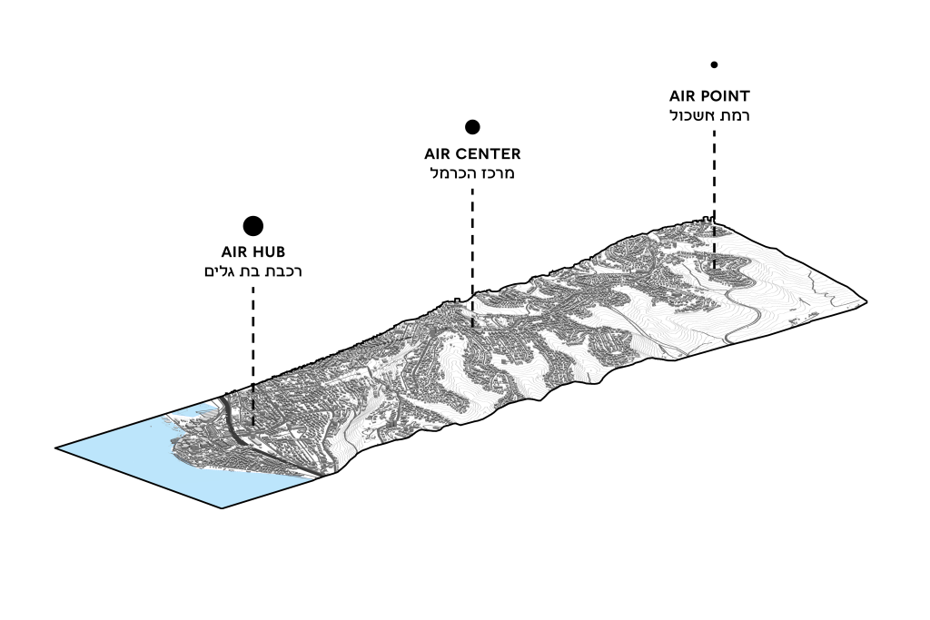 הפרויקט מציג עמדה ברורה: יש לפתח מודל של תחבורה אווירית ציבורית, אוטונומית ונגישה, שתפעל כתשתית משותפת ולא ככלי פרטי לעשירים בלבד. מתוך ניתוח היסטורי, בחינת דוגמאות בינלאומיות וחקר תנאי הרוח בעיר, מתגבשת אסטרטגיה תכנונית־אדריכלית לחיפה. ההצעה בנויה במבנה היררכי של תחנות – AirPoints שכונתיים, AirCenters במוקדים עירוניים מרכזיים ו־AirHubs ראשיים המחוברים לצמתים של תחבורה ארצית – כולם מותאמים לסקייל המקומי. העיצוב האדריכלי מבוסס על זרימות האוויר כמחולל מרכזי, ליצירת סינרגיה בין העיר לבין הטכנולוגיה. באופן זה, התחבורה האווירית אינה מוצגת כעתיד טכנולוגי בלבד, אלא כבסיס לשינוי חברתי־מרחבי: חיזוק הקישוריות, הקטנת פערים, והצעת עתיד לעיר רב־ממדית, נגישה ושוויונית יותר.